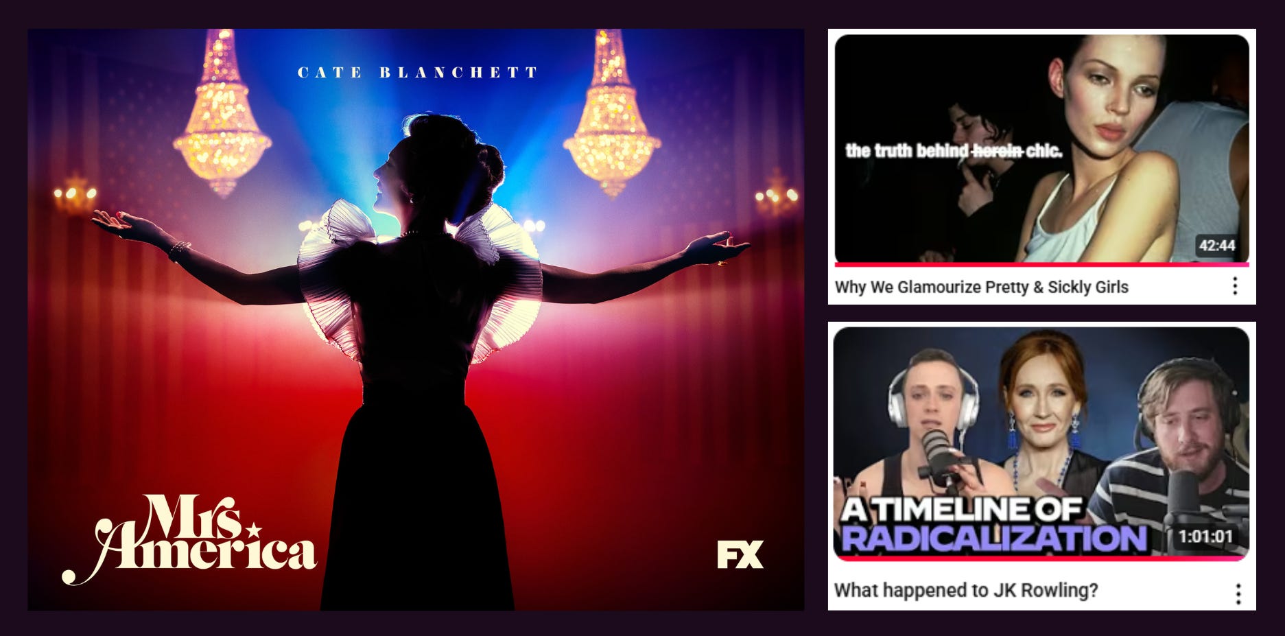 Mrs America è una serie di qualche anno fa che racconta lo scontro tra il movimento femminista degli anni 70 e quello anti-femminista e conservatore capitanato da una donna che era così tanto a destra che persino Ronald Reagan, a un certo punto, decise di farla fuori: Phyllis Schlafly, interpretata da Cate Blanchett che letteralmente non riesce a fare una cosa sbagliata neanche se ci prova. Vi posso solo dire che ho pianto perché, ahimè, la verità è che dagli anni 70 è cambiato veramente poco.
